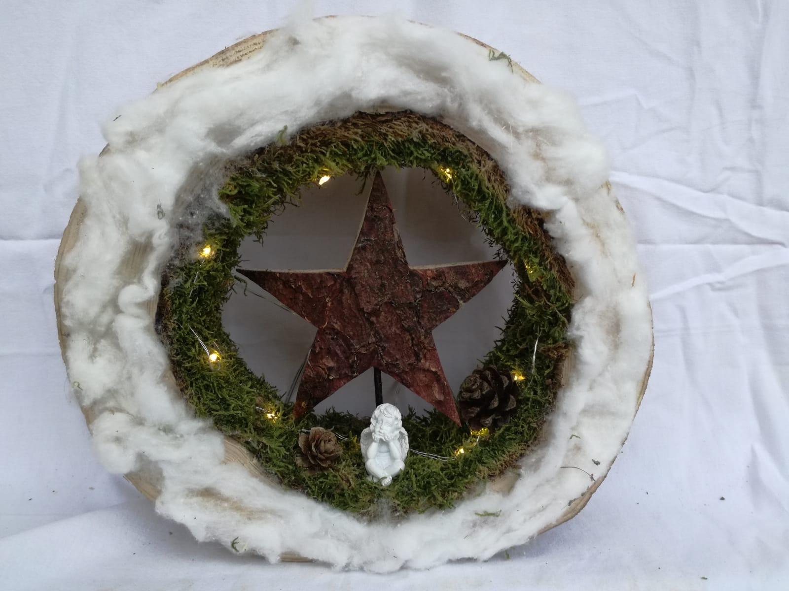 Veröffentlicht am 5. Dezember 2018 von Bianca SternerHolzstern mit Rinde in ausgehöhltem Baumstamm mit LED-Beleuchtung